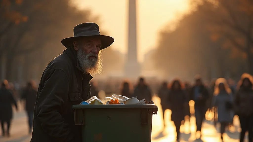 Years ago, I was working in Washington, D.C.—surrounded by marble monuments, polished shoes, and people who carried themselves as though the world turned because they willed it. On a quiet early morning walk near Union Station, I saw a man bent over a dumpster.